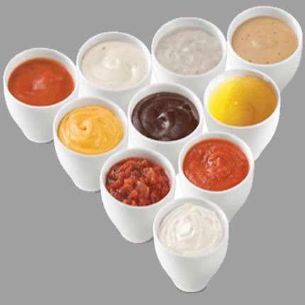 lipie 80g, carne 150g, cartofi prăjiți 150g, varză albă 70g, castraveți murați 40g, ceapă 30g, roșii 30g, pătrunjel 7g, sos la alegere
